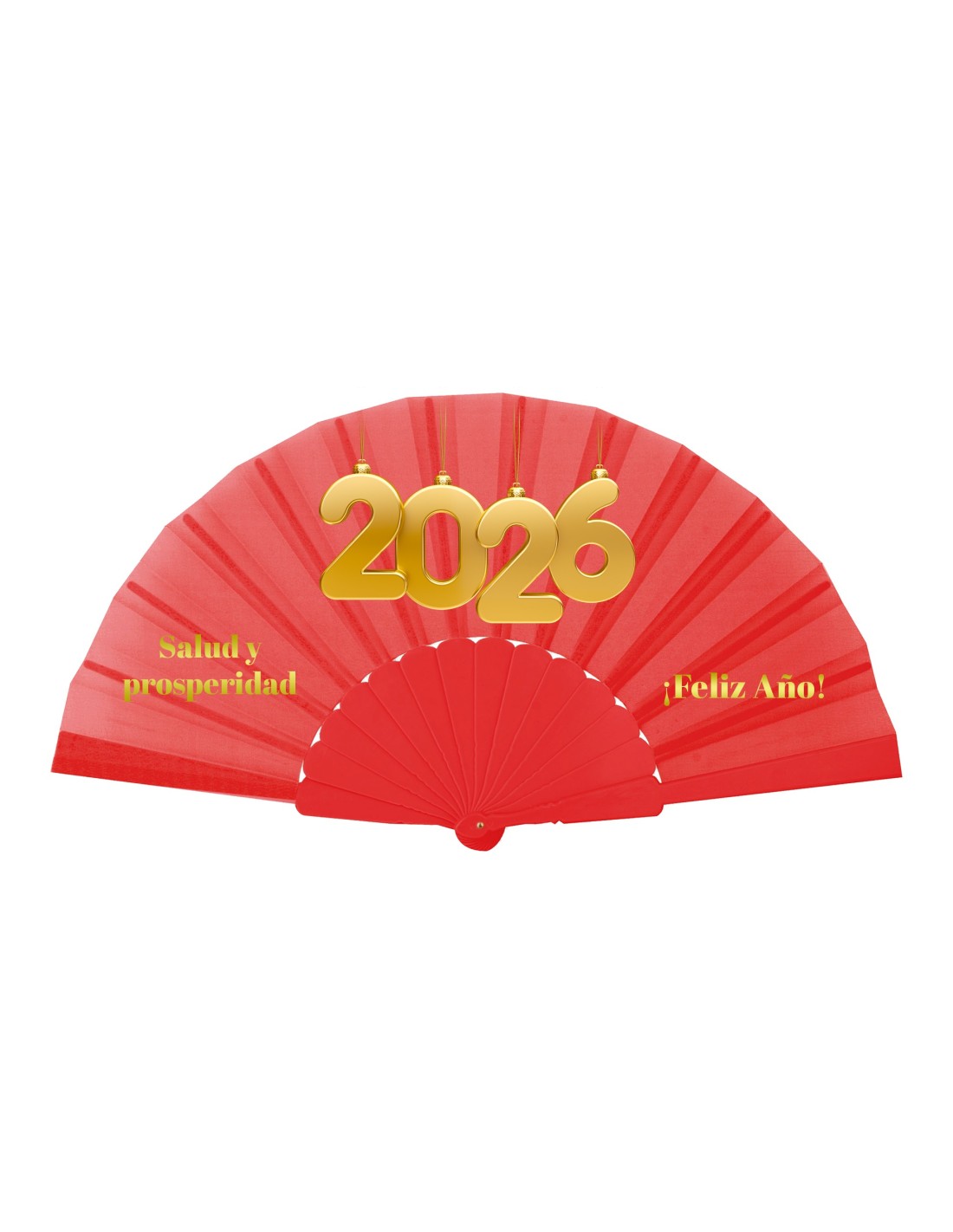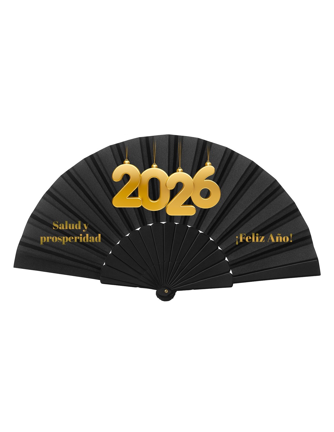 Abanico de plástico color negro, diseño de año nuevo 2026